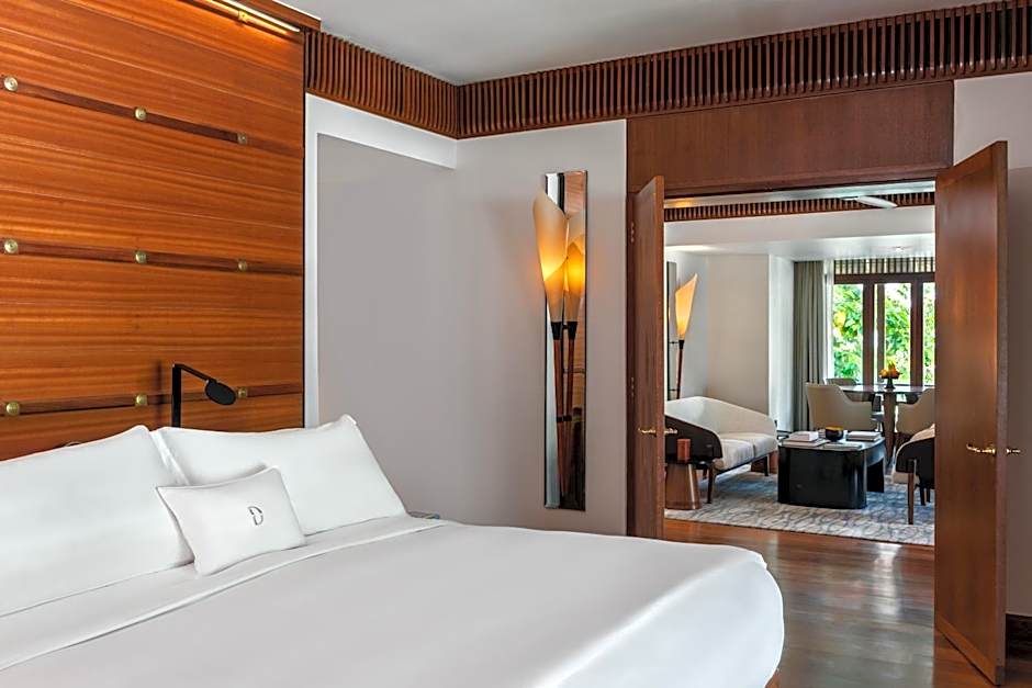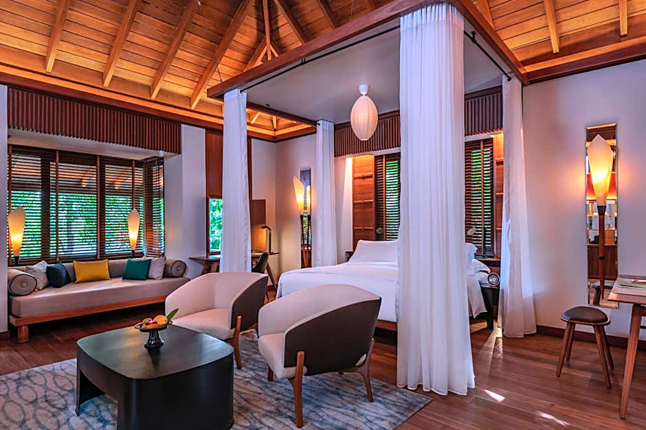 Featuring a private balcony overlooking the tropical landscape, spacious rooms consist of a combined bedroom and living area. Rooms include a comfortable day bed, a private bar and a large bathroom with dressing area, bathtub and shower facility.